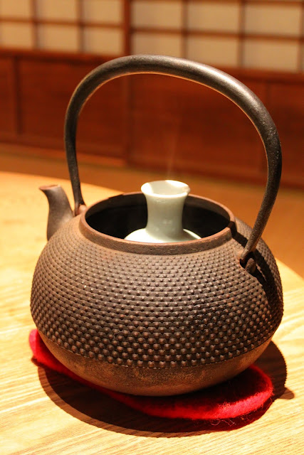 新酒が出てくるこの時期に燗をつけて飲むお酒はとてもおいしい。 新酒の荒々しさを冷で味わってからストーブに上に置いてあった鉄瓶をテーブルに移動してお銚子を鉄瓶お風呂に。これがまた見た目に味わいがある。最近仲間入りのアイテムがあって鷲尾加矢子さんハンドメイドのフェルト。ナベ敷きにもなるし鍋つかみにもなる優れもの。さらにハート型。あったか形と色合いでほっこりします。 |
