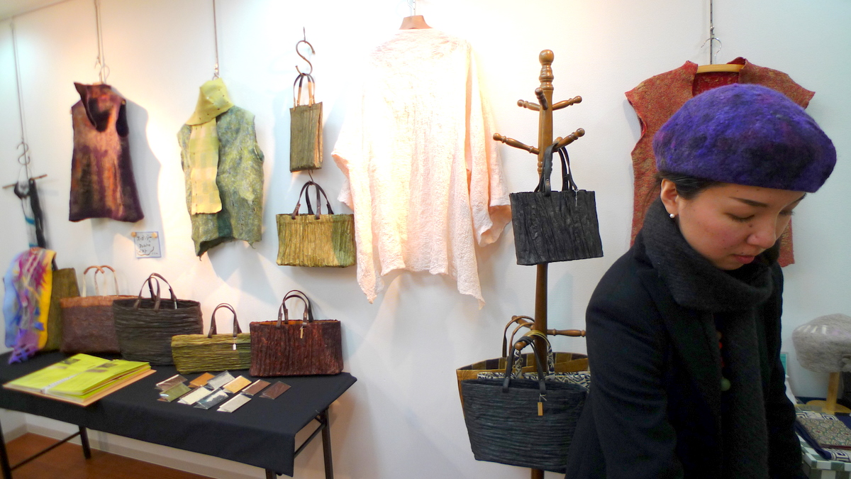 とてもお世話になっているフェルト作家の鷲尾加矢子さんが鎌倉の「雪ノ下ギャラリー」で、只今展示をしています。期間は1/7~10日まで。そこにオーグの紙のバックも一緒に展示させて頂きました。フェルトの柔らかい素材感との木の肌ような紙の素材感がとても雰囲気良く飾ることができました。 鷲尾加矢子さんの作品は、帽子、マフラー、なべつかみ、ブックカバー、巾着袋など多彩な種類が置いてあり、どれもこれも、手触りや色合いがとっても素敵でどれもこれも良く好きな一番が見つかりません。 見れば見るほどコダワリの発見があり、すごく丁寧なもの作りをする方です。 是非ごらんいただければと思います! 毎年、同じ時期に展示をされるそうなので見逃した方は是非2012年1月をお楽しみに!