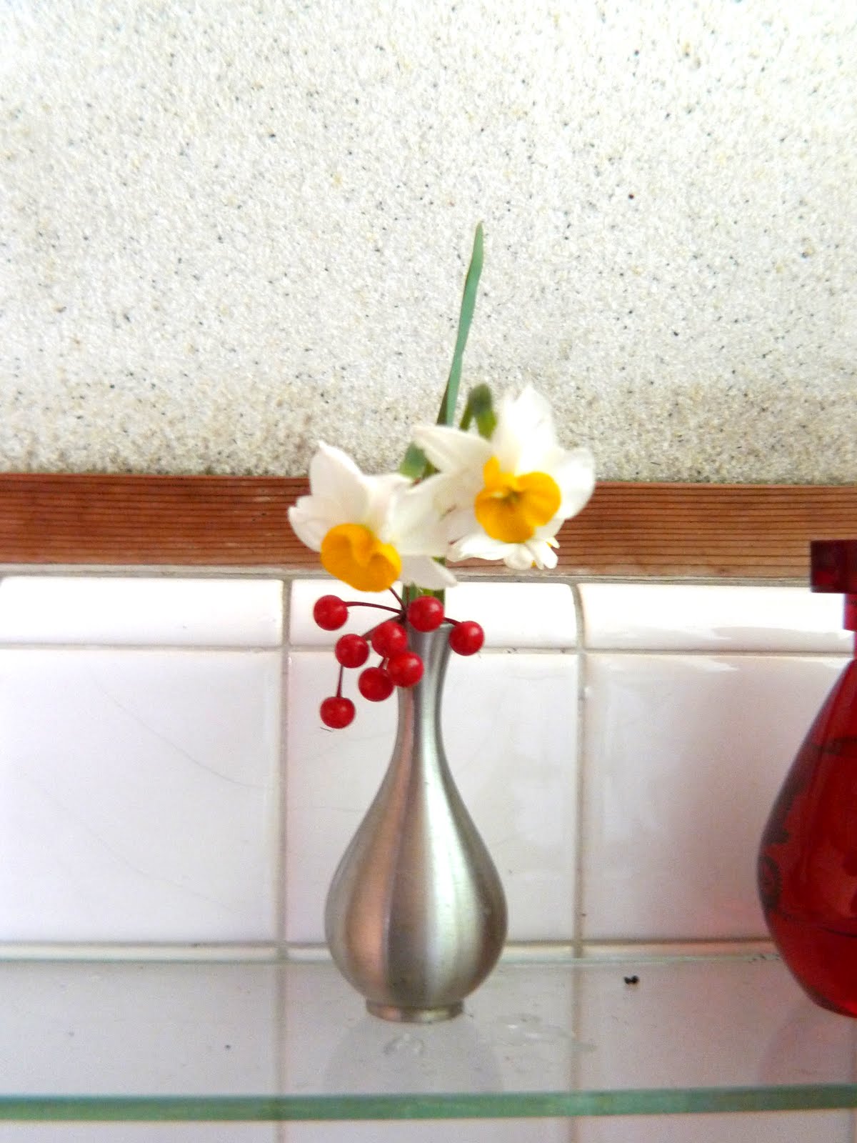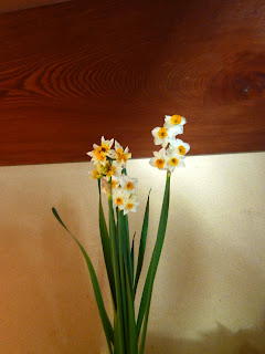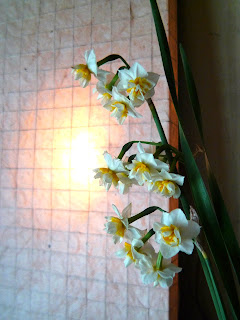 お正月に両方お隣さんからお庭に咲いている水仙をたっくさん頂きました!香りがよく清楚なお花で飾り栄えするし日持ちもいいありがたいお花です。道端にも沢山見かけるようになり、この時期に咲く花は少ないのでついつい散歩途中に目がいってしまいます。たくさん頂いたので色々な所に飾ってみると普段道端に生えているのとはまったく違う表情がでて楽しかったので写真を色々撮ってみました。