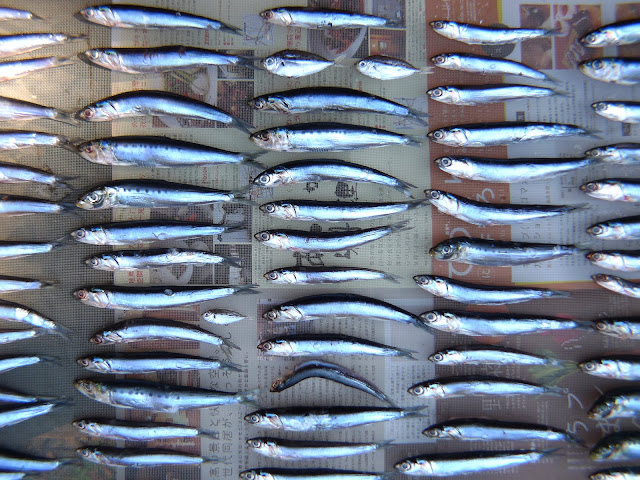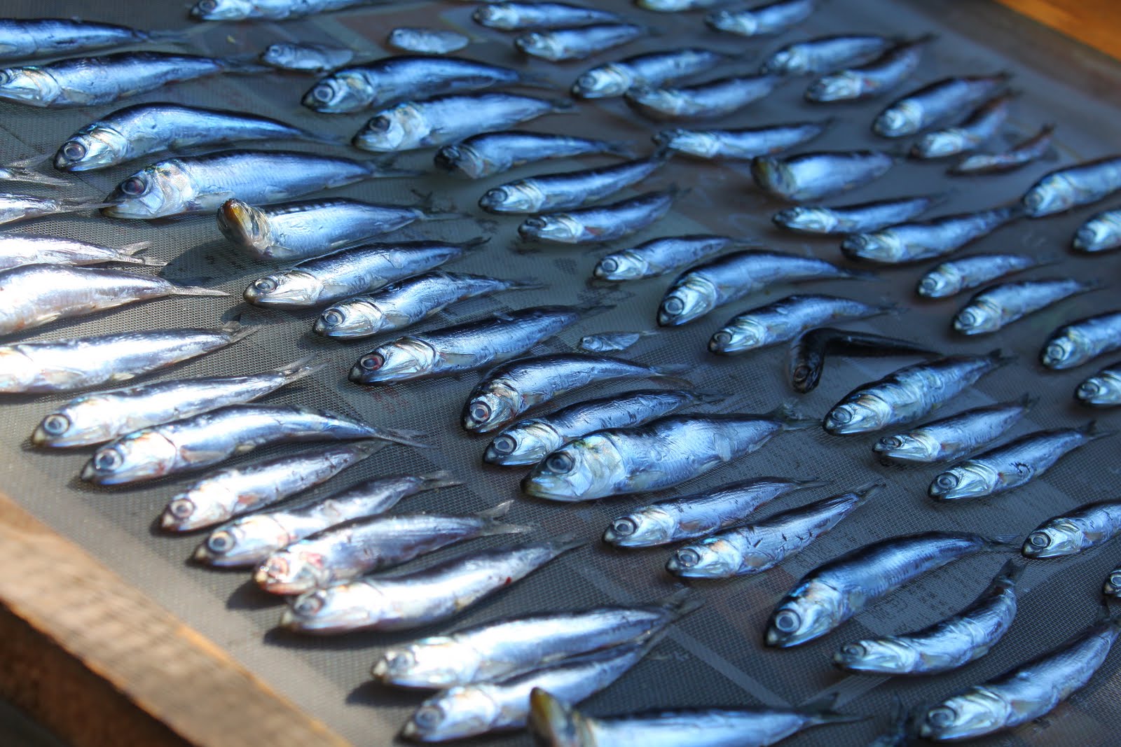 朝取れたての相模湾のウルメイワシやマイワシが手に入ったので、早速朝ごはん用に干物にしました。色々な表情や大きさがあって並べててとても楽しい。小さい別の魚もおまけで入っていました。塩分5%で一昼夜漬けます。、自然のアミノ酸がたっぷり入ったお酒を入れると、内臓の臭みが旨みになってとても美味しく頂けます。朝ごはんの事を想像して並べていると、この作業が楽しくてしょうがない。土鍋ごはんに味噌汁に糠漬けにイワシの干物セットは先人達が作っ最高に美味しい宝物です。 「ウルメとマイワシの違いはどこでしょう?」
