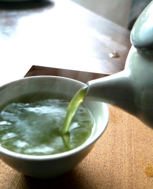 綺麗なグリーンティが出てきます。緑色が酸化して茶色にならない内にキリッと苦味を含んだ新鮮なグリーンを頂くのが楽しみなひとつ。すっきりして体も温まり元気が出てきます。 ちなみに、60℃のお湯でゆっくり抽出すると甘み成分アミノ酸類が中心にでてきて苦味が少なくなり優しい味になるが、朝は熱い湯がいい。緑色を頂くのがいい。