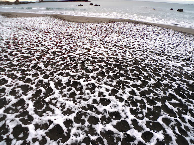 じゃーーん。波の泡のような模様を発見!どっちが海だ!?