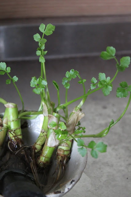 これはセリ。水だけでどんどん成長したので土に戻し、 大きくなる事を楽しみにしよう。 元気で新鮮な物を食べる事は、体の循環を良くする作用や体温が上がる。 循環が良いと悪いものを出しやすくする。 自然野菜の採りたてをさっと茹でて食べると、全身で美味しいと感じる事があるのだが この喜びの体感は、忘れることが出来ないしあわせの秘薬を感じる。 新鮮な刺身も無いと落ち着かない。 コンビ二、加工品、はるか遠いものは この身近な秘薬を感じられないだろうなぁ。 そういえば、スーパーの野菜はほおっておくとあっという間に腐る。 それは、細胞が菌に負けてしまうから。 化学薬品の栄養や農薬で素材が育ち、 ・漂白剤 ・着色料 ・発色剤 ・保存料 ・殺菌料 ・酸化防止剤 ・甘味料 ・防かび剤 ・リン酸 ・その他栄養添加系(ビタミン、アミノ酸、ミネラル)など色々 となどが添加される。超無菌状態、栄養減少で栄養添加。 これじゃあ、たべる側は病気や細菌に対して 弱くなっちゃう。 旬の元気な野菜は腐らないで 枯れる萎れる。 この違いはとても大きい。 力の源は内からが基本だ。 精神が元気でも 体が一緒について行かない人は 食べ物が関係している気がしてならない。 家庭から和食が無くなり、伝わるものが無くなり、 企業のペースに翻弄された現代の食の在り方を 変えないと! まずは発酵の里のイベントに行って見よう。 発酵の里こうざき “お蔵フェスタ” 2011.3.13(日) 町を上げてのイベントらしい面白そうだ。 http://www.teradahonke.co.jp/ http://hakkou.org/ こっちも! 葉山の古民家で開催する 和食を伝える伝わる 「簡単ぬか漬け講座」や「和の薬膳ごはん講座」「味噌作り」の NPO食べごと研究所に参加しようっ! http://tabegoto.com/ |