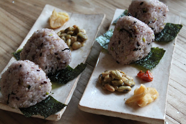 雑穀入りのご飯に炊き上げ、結んで置くだけ。