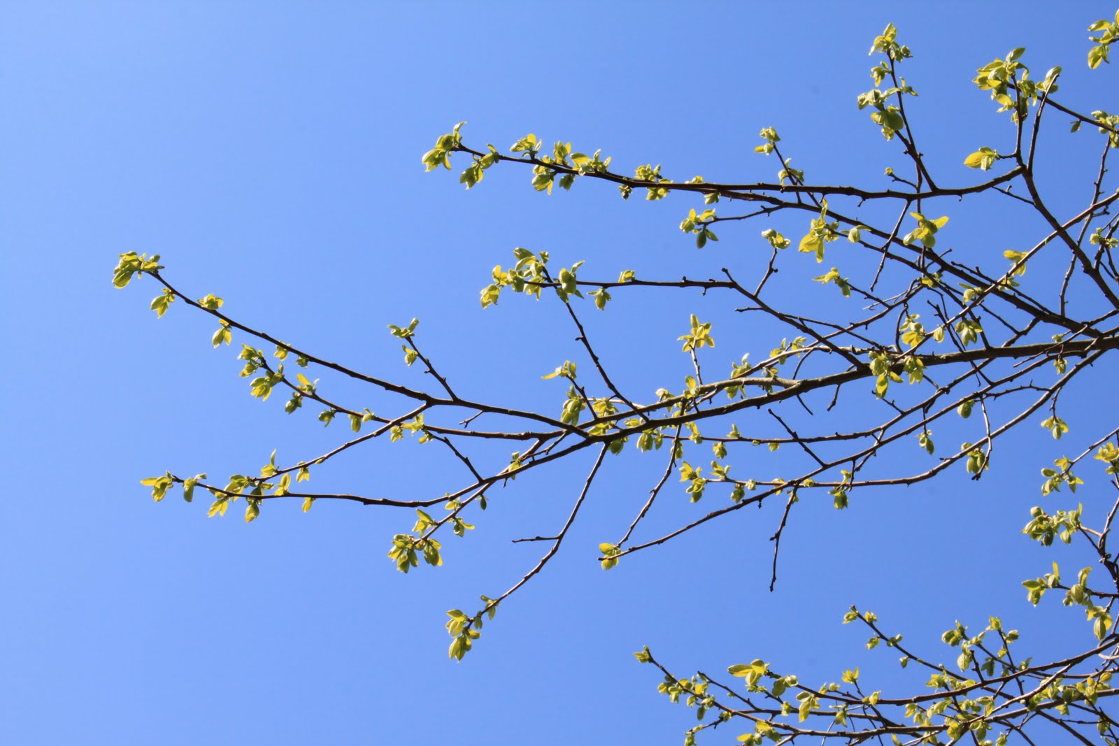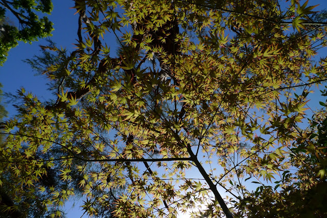 晴天の青空にめいっぱい広げようとしてる紅葉の若葉たち |