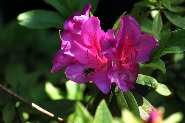 ツツジも咲き出した! 甘い蜜に蜂がやってきた賑やかー! |