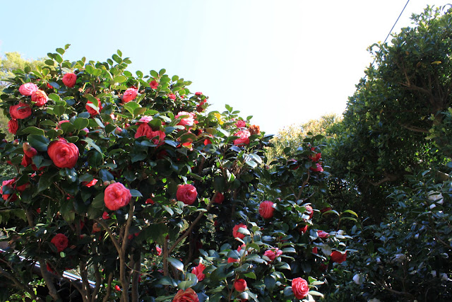 八重椿も満開!花びらが1枚1枚落ちるので、地面も彩ってすごい存在感があるんだ。 |